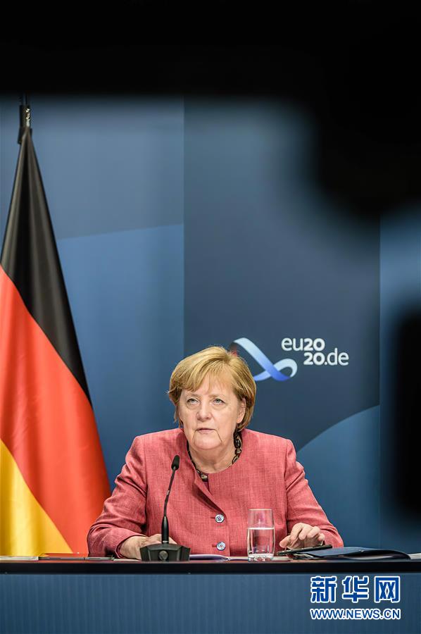 10月29日,德国总理默克尔参加欧盟领导人视频会议。新华社发(欧盟供图)