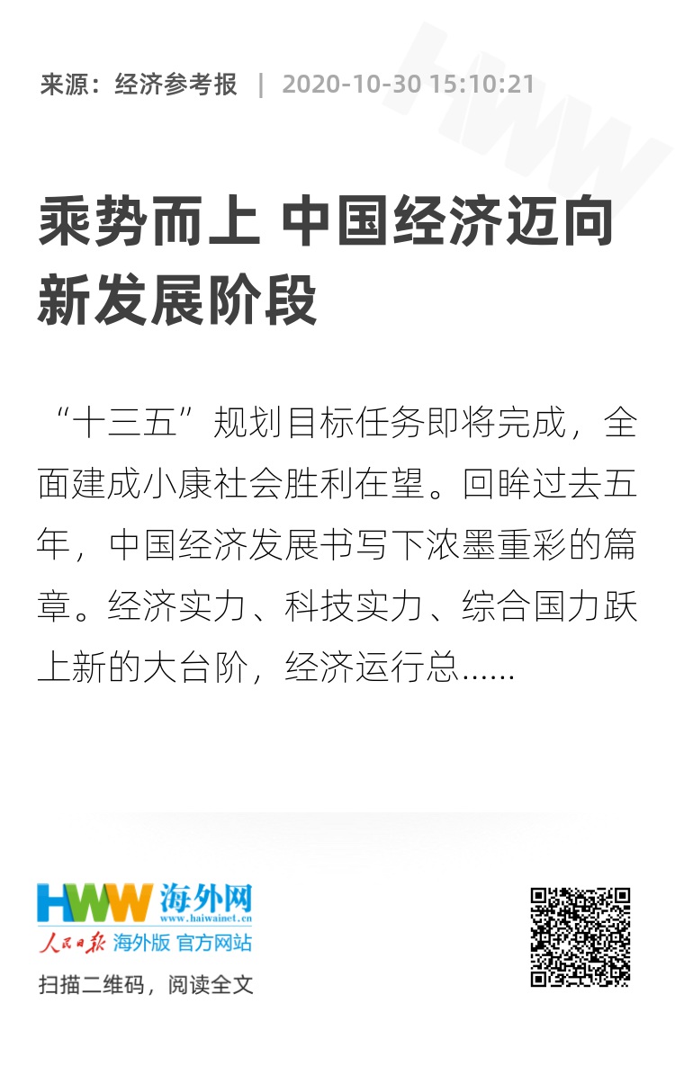 展望“十四五”,以十九届五中全会精神为指引,中国经济将迈入新发展阶段。乘势而上,奋力前行,努力探索形成新发展格局的有效路径,中国经济巨轮将乘风破浪,实现更高质量、更有效率、更加公平、更可持续、更为安全的发展。