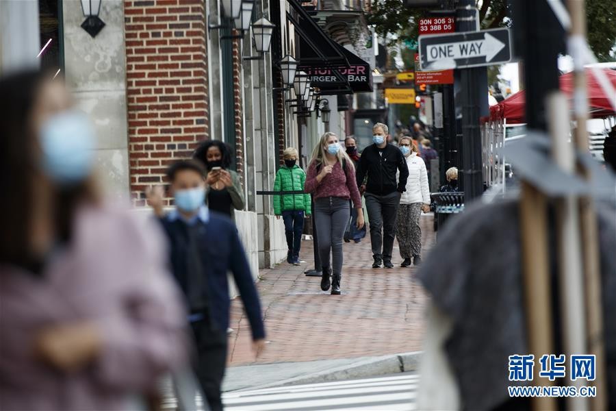 0月30日,在美国首都华盛顿,人们戴着口罩出行。 美国约翰斯·霍普金斯大学30日发布的新冠疫情最新统计数据显示,美国累计确诊病例超过900万例。 新华社发(沈霆摄)