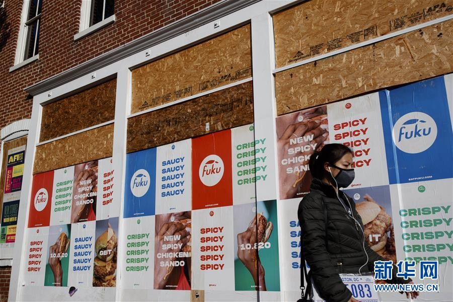 10月30日,在美国首都华盛顿,一名行人戴着口罩出行。 美国约翰斯·霍普金斯大学30日发布的新冠疫情最新统计数据显示,美国累计确诊病例超过900万例。 新华社发(沈霆摄)