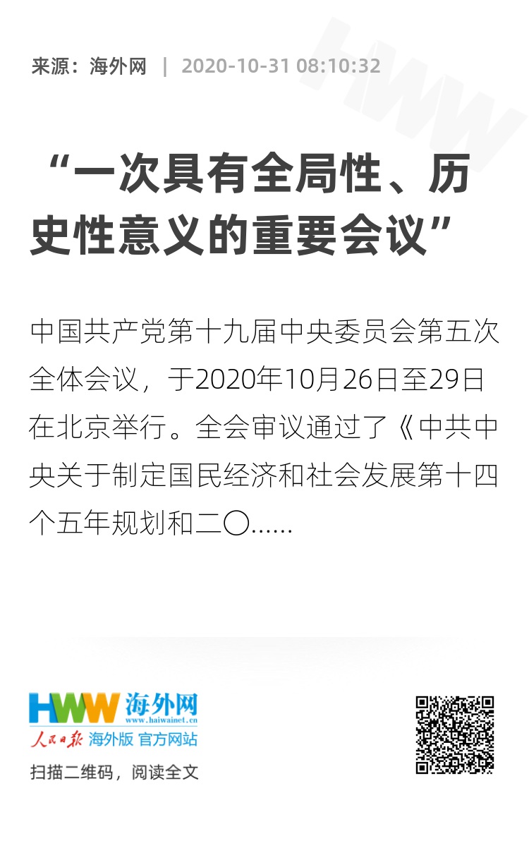 王晓晖说,全会最重要的成果,就是审议通过了《中共中央关于制定国民经济和社会发展第十四个五年规划和二〇三五年远景目标的建议》。规划《建议》是开启全面建设社会主义现代化国家新征程、向第二个百年奋斗目标进军的纲领性文件,是今后5年乃至更长时期我国经济社会发展的行动指南。