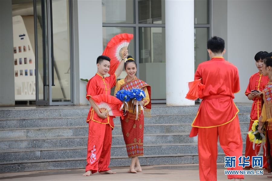10月30日,在老挝万象,老挝国立大学学生练习中国舞蹈。 老挝国立大学孔子学院30日举办“孔子学院日”活动,庆祝老挝国立大学孔子学院成立10周年。 新华社记者 章建华 摄