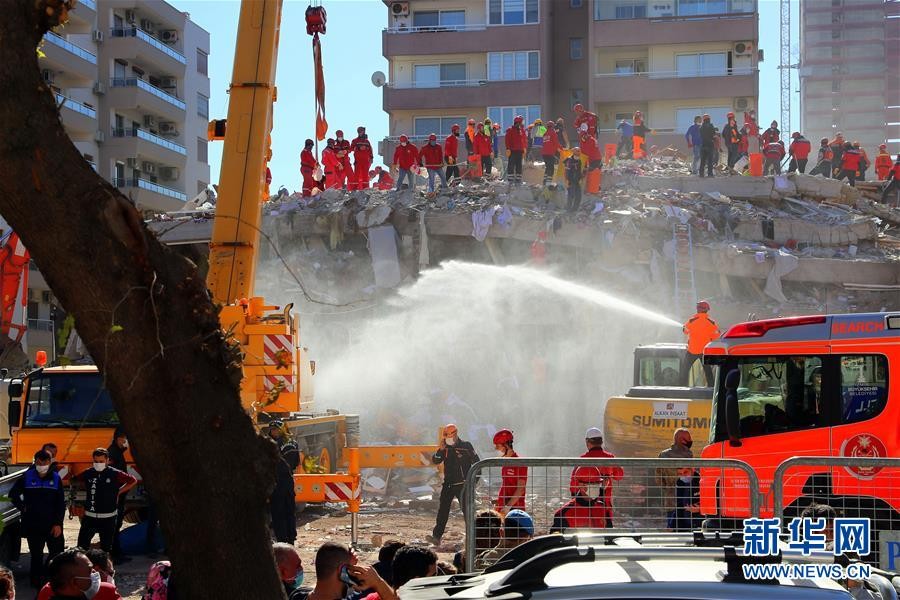 10月31日,救援人员在土耳其伊兹密尔省地震受灾现场工作。 土耳其西部、希腊东部萨摩斯岛附近的爱琴海海域30日发生6.6级地震。截至目前,已造成土耳其至少25人死亡、超过800人受伤;希腊2人死亡,另有10余人受伤。 新华社发