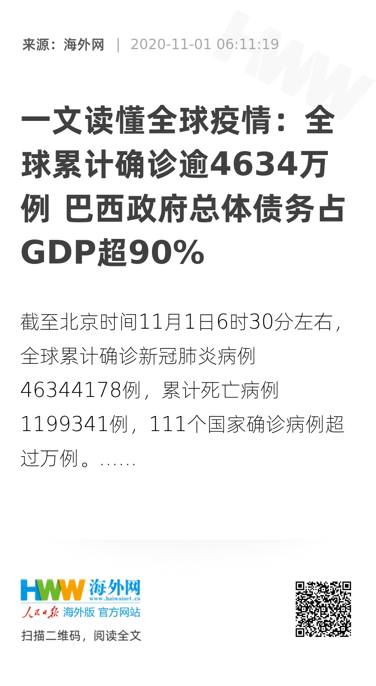 美洲: 福奇称美国群体免疫会带来巨大痛苦 巴西政府总体债务占GDP超90%