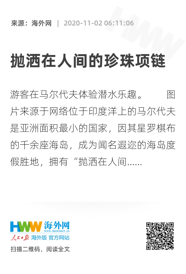 沙滩漫步、水中畅游,享受马尔代夫美景的同时,游客们也一定要注意参加水上活动时的人身安全,并保护好当地的海洋生态环境。带回难忘的马尔代夫旅行回忆,也留下风光明丽的白沙海滩。(海外网 吴正丹整理)