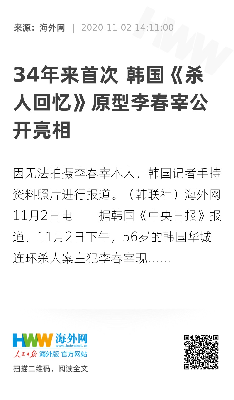 据海外网早前报道,今年7月2日,华城李春宰连环杀人案历时一年调查结束,警方当天公布调查结果,认定李春宰作案23起,杀害14名女性,并强奸、抢劫9名女性。此时距离华城连环杀人案首起案件发生,已有34年。遗憾的是,李春宰的罪行已过追溯时效。