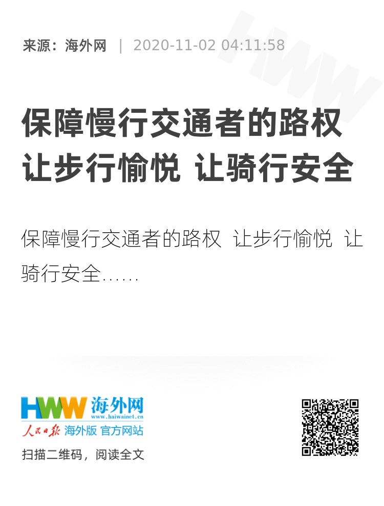 随着越来越多的城市居民选择步行或骑行等慢行交通手段作为日常出行方式,慢行交通者的路权问题也日益凸显。