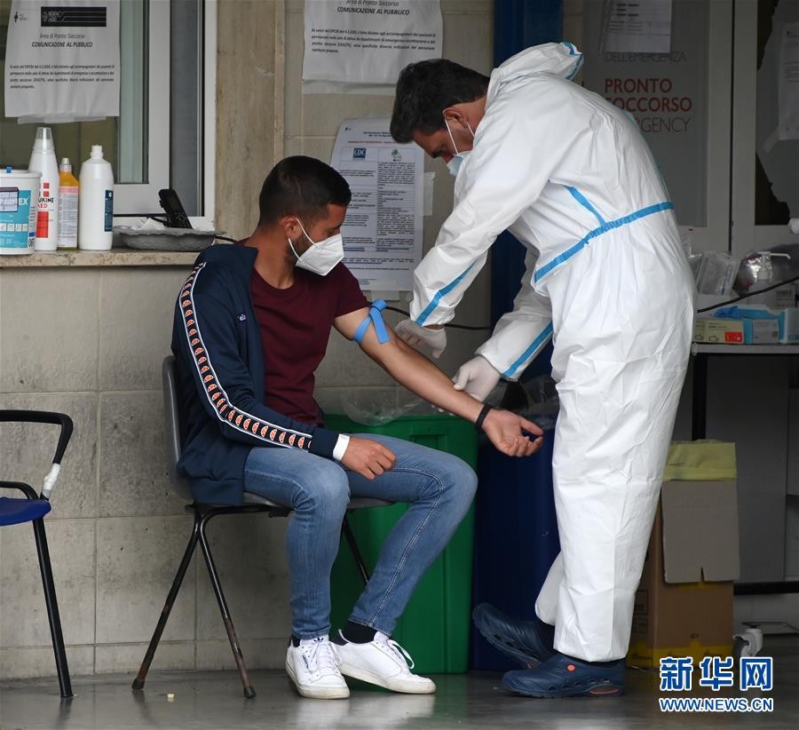 11月2日,在意大利罗马的一家医院,一名男子接受新冠肺炎血清检测。 意大利总理孔特2日宣布,意大利将采取更严格的措施遏制新冠病毒的传播。当日,意大利新冠肺炎累计确诊病例达731588例。 新华社发(阿尔贝托·林格利亚 摄)