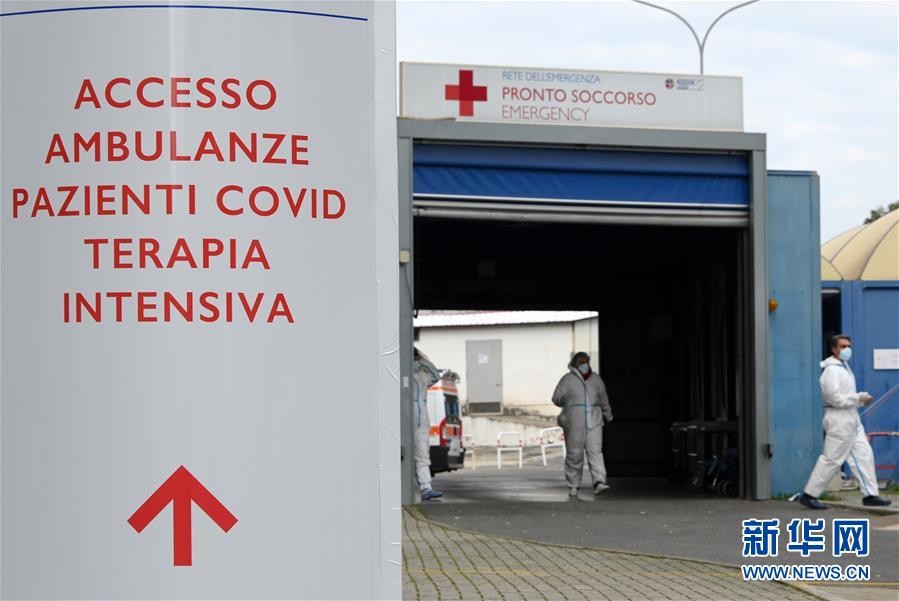 11月2日,在意大利罗马的一家医院,医护人员走出新冠重症患者急救车入口。 意大利总理孔特2日宣布,意大利将采取更严格的措施遏制新冠病毒的传播。当日,意大利新冠肺炎累计确诊病例达731588例。 新华社发(阿尔贝托·林格利亚 摄)