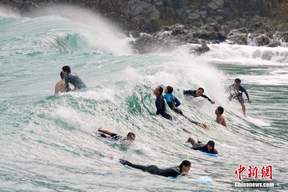 11月3日,不少市民来到香港大浪湾泳滩游泳、冲浪或休闲。随着香港新冠肺炎疫情不断缓和,已关闭三个多月的香港康文署辖下泳滩从11月3日起重新开放。 香港康文署提醒泳滩使用人士必须遵守规例,不得进行多于4人的群组聚集,身处公众地方时须一直佩戴口罩等。 中新社记者 张炜 摄