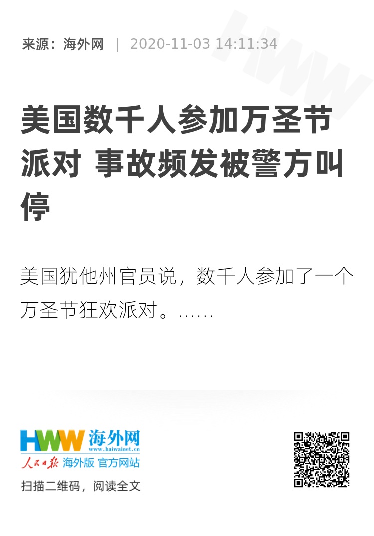 海外网11月3日电 美国犹他州官员说,数千人参加了一个万圣节狂欢派对,现场事故频发。