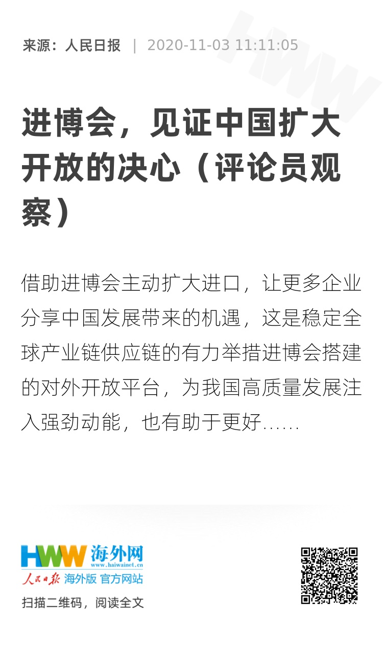 借助进博会主动扩大进口,让更多企业分享中国发展带来的机遇,这是稳定全球产业链供应链的有力举措