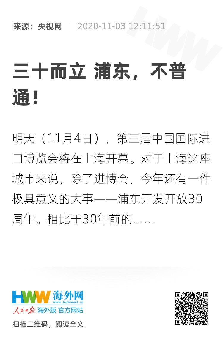 明天(11月4日),第三届中国国际进口博览会将在上海开幕。对于上海这座城市来说,除了进博会,今年还有一件极具意义的大事——浦东开发开放30周年。