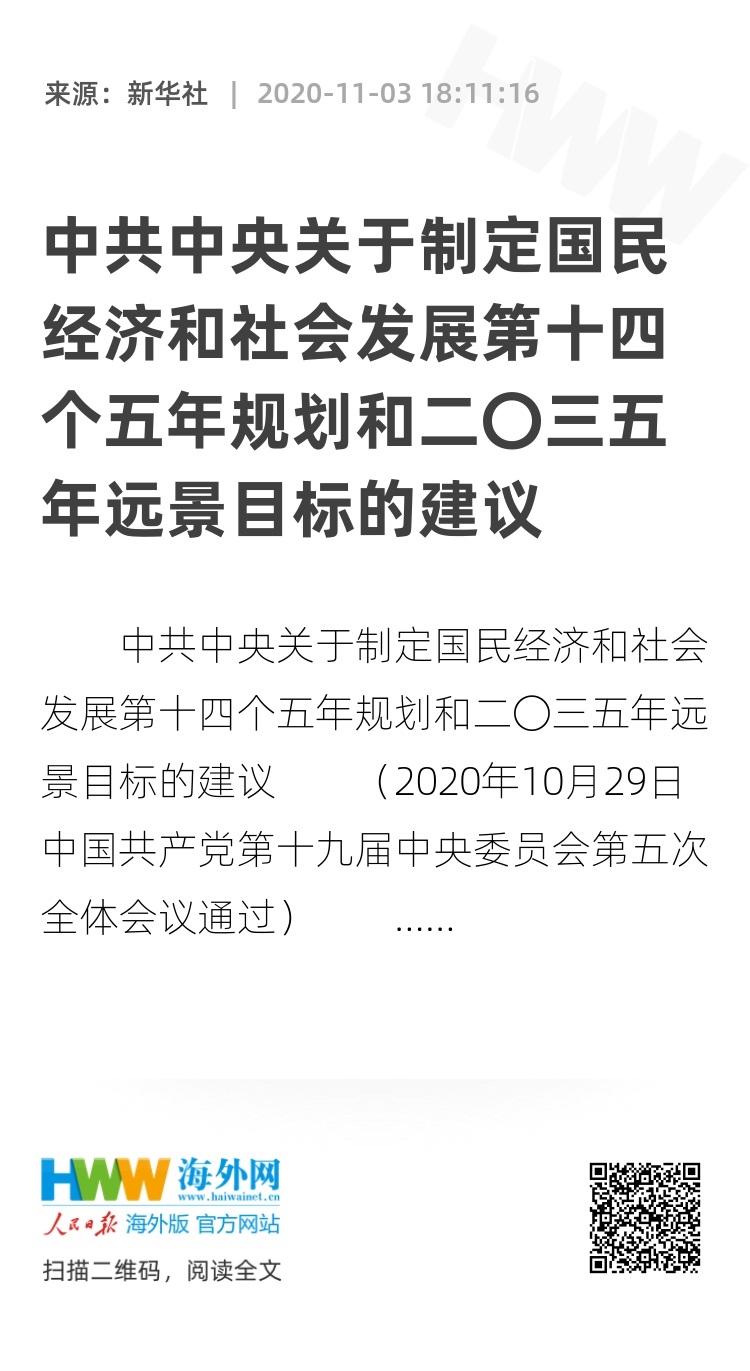 (2020年10月29日中国共产党第十九届中央委员会第五次全体会议通过)