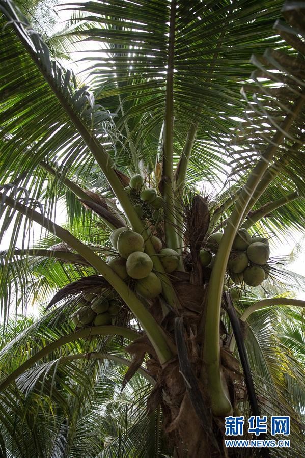 这是9月21日在泰国叻武里府纳隆萨创立的椰子公司园区拍摄的椰子树。 新华社记者 张可任 摄