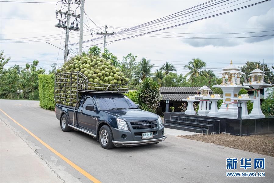 9月21日,一辆货车将椰子送到泰国叻武里府纳隆萨创立的椰子公司。 新华社记者 张可任 摄