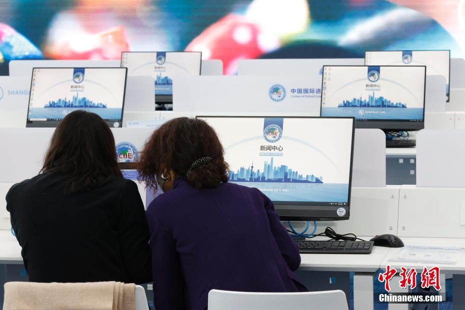 11月4日,记者在第三届中国国际进口博览会新闻中心工作。当日,第三届进博会新闻中心正式启用。据悉,即将在上海开幕的进博会吸引了3000多名中外媒体记者采访报道,其中包括来自107家境外传媒机构的记者。 中新社记者 韩海丹 摄