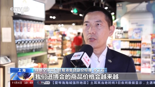 绿地全球商品贸易港集团副总经理 余正友:跟厂商一起努力之后,我们进博会的商品价格会越来越跟国内的市场同类产品的价格接近,让上海的消费者、全国各地的消费者享受到进博会实实在在的服务和红利。