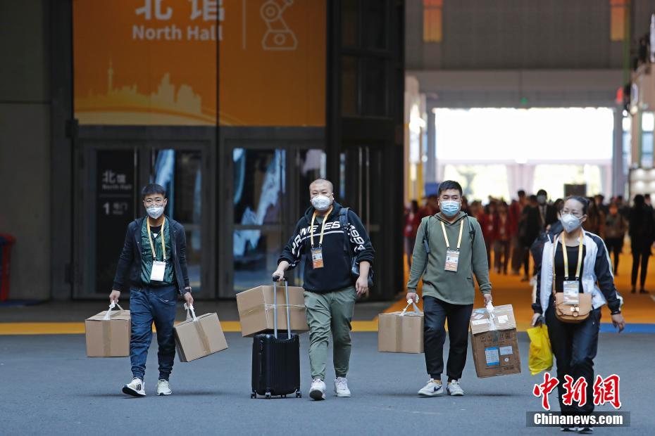 11月5日,第三届中国国际进口博览会迎来首日客流,参会者通过人员信息核对、红外无感测温、安检进入场馆。图为参会者进入场馆。 中新社记者 殷立勤 摄