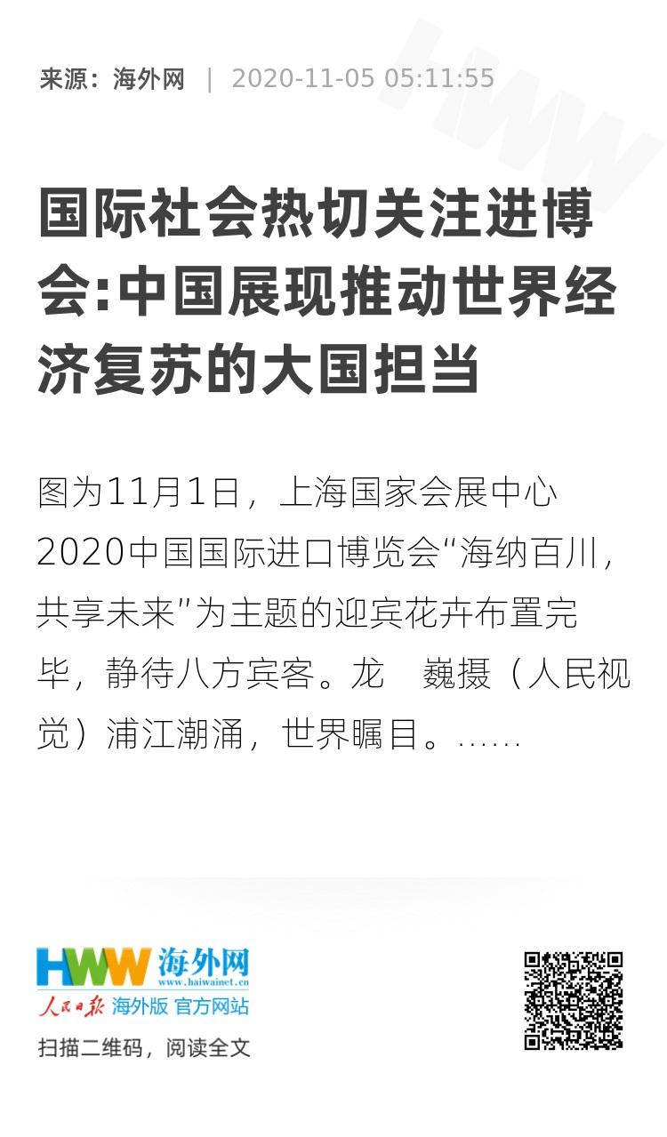 当前,新冠肺炎疫情仍在全球肆虐。国际舆论普遍认为,不同寻常的年份,如期举办的盛会,为疫情之下艰难复苏的全球经济带来希望之光。