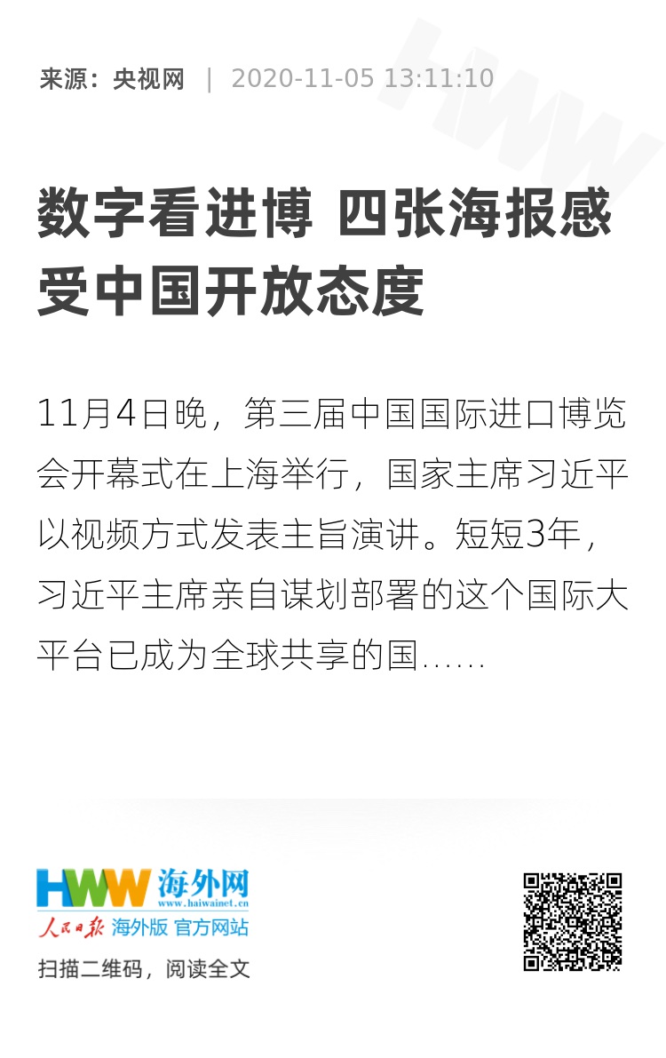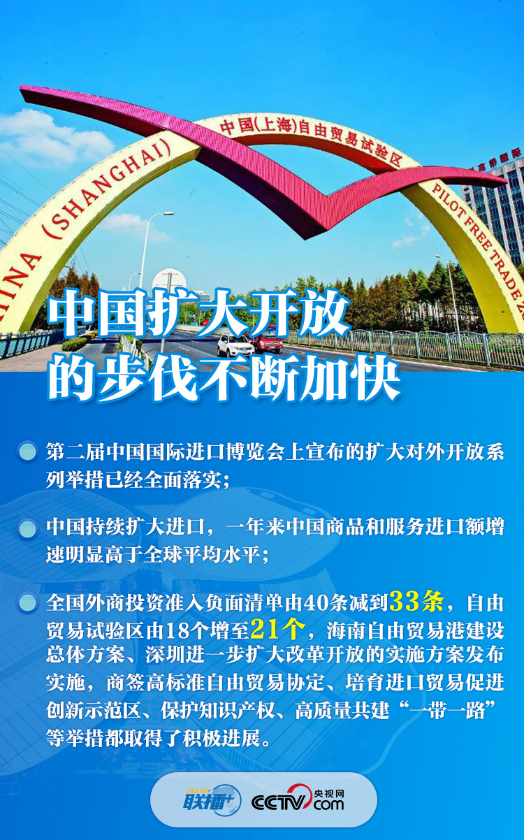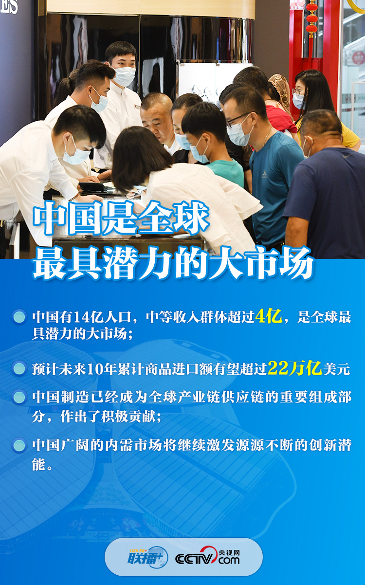 “各国企业参展踊跃,展览面积又扩大了近3万平方米”,“全国外商投资准入负面清单由40条减到33条,自由贸易试验区由18个增至21个”,“中国有14亿人口,中等收入群体超过4亿,是全球最具潜力的大市场”......一组组数字振奋人心,体现了中国邀请各方“聚进博、享机遇”、推动世界经济复苏的真诚愿望,展现了中国在大疫面前与各国“共天地、同风雨”的大国担当。