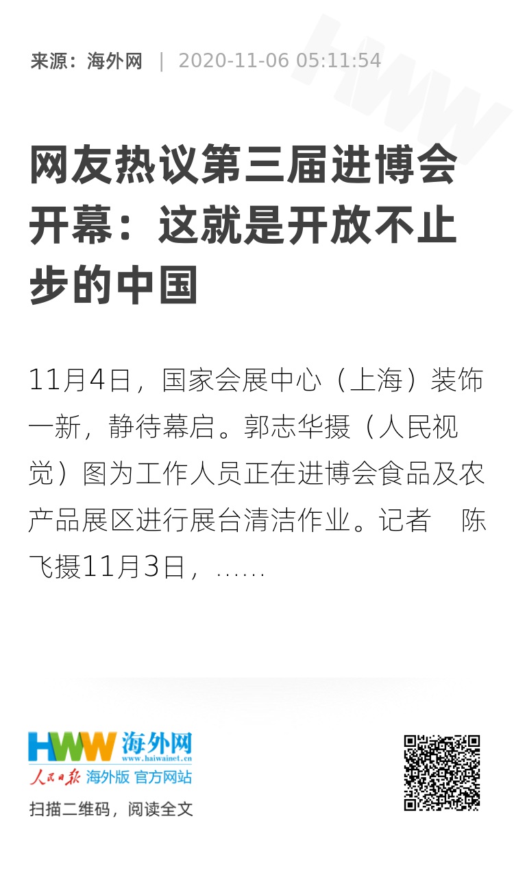 原标题:网友热议第三届中国国际进口博览会开幕——