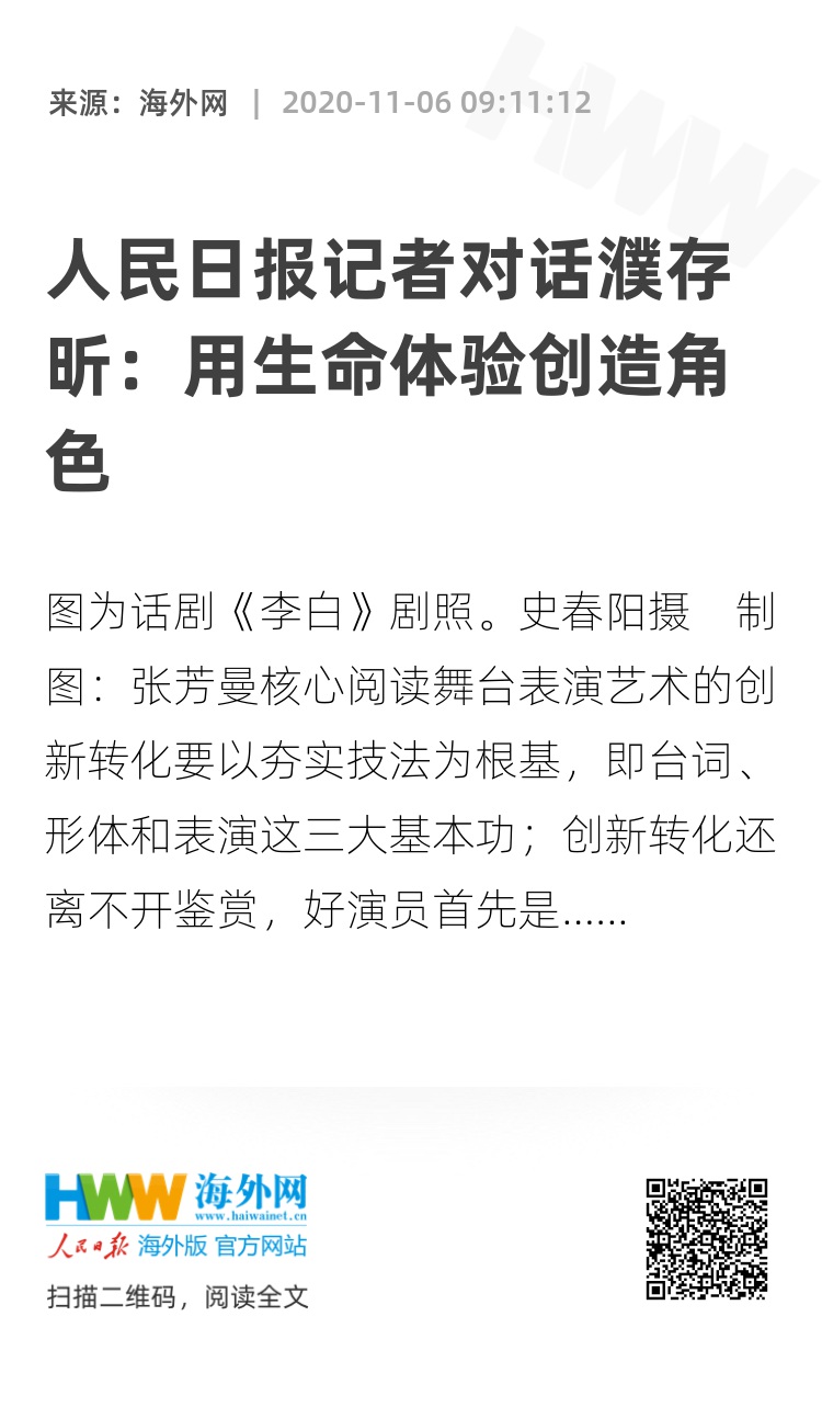 (作者濮存昕为中国戏剧家协会主席,本报记者徐馨采访整理)