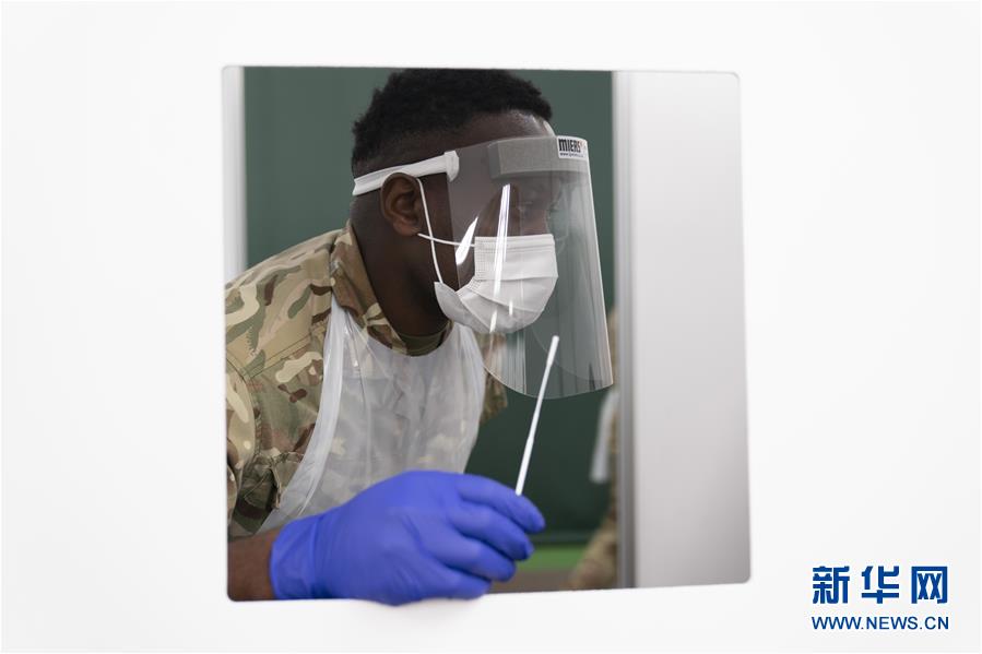 11月6日,一名军人在英国利物浦的一处新冠病毒检测点准备采样。 当日,利物浦开展全城范围新冠病毒检测,当地或在那里工作的人无论是否出现症状,都可以接受检测。这是英国首次在城市开展全城范围的大规模新冠检测。 新华社发(乔恩·休珀摄)