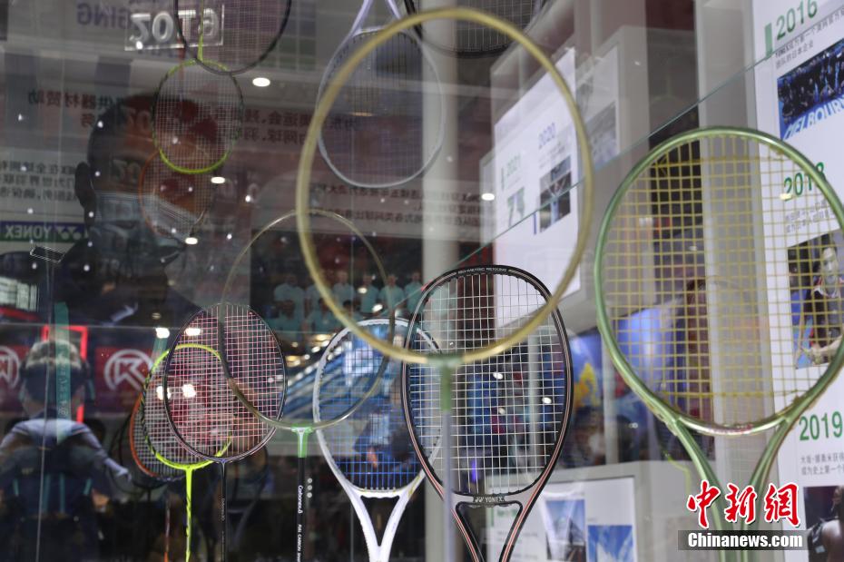 日本羽毛球品牌带来了自己40多年球拍的研发历史。中新社记者 张亨伟 摄