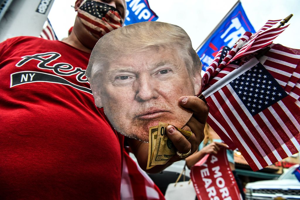 当地时间2020年11月7日,美媒测算拜登率先获得270张选举人票,特朗普的支持者开始在美国多个州的首府举行抗议示威。他们号召在美国50个州的首府和主要城市举行所谓“和平抗议”。有执法人员表示,一些参加抗议示威的特朗普支持者携带枪支。消息来源:央视新闻。图片作者:人民视觉