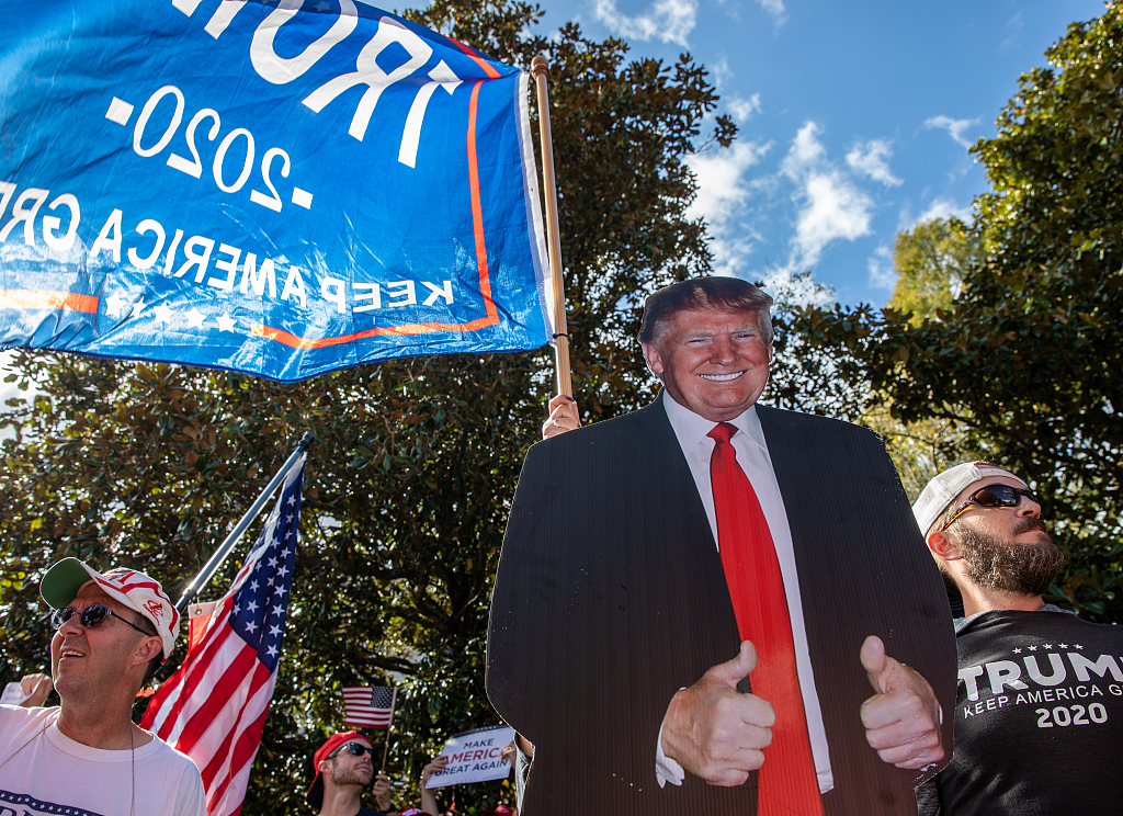 当地时间2020年11月7日,美媒测算拜登率先获得270张选举人票,特朗普的支持者开始在美国多个州的首府举行抗议示威。他们号召在美国50个州的首府和主要城市举行所谓“和平抗议”。有执法人员表示,一些参加抗议示威的特朗普支持者携带枪支。消息来源:央视新闻。图片作者:人民视觉