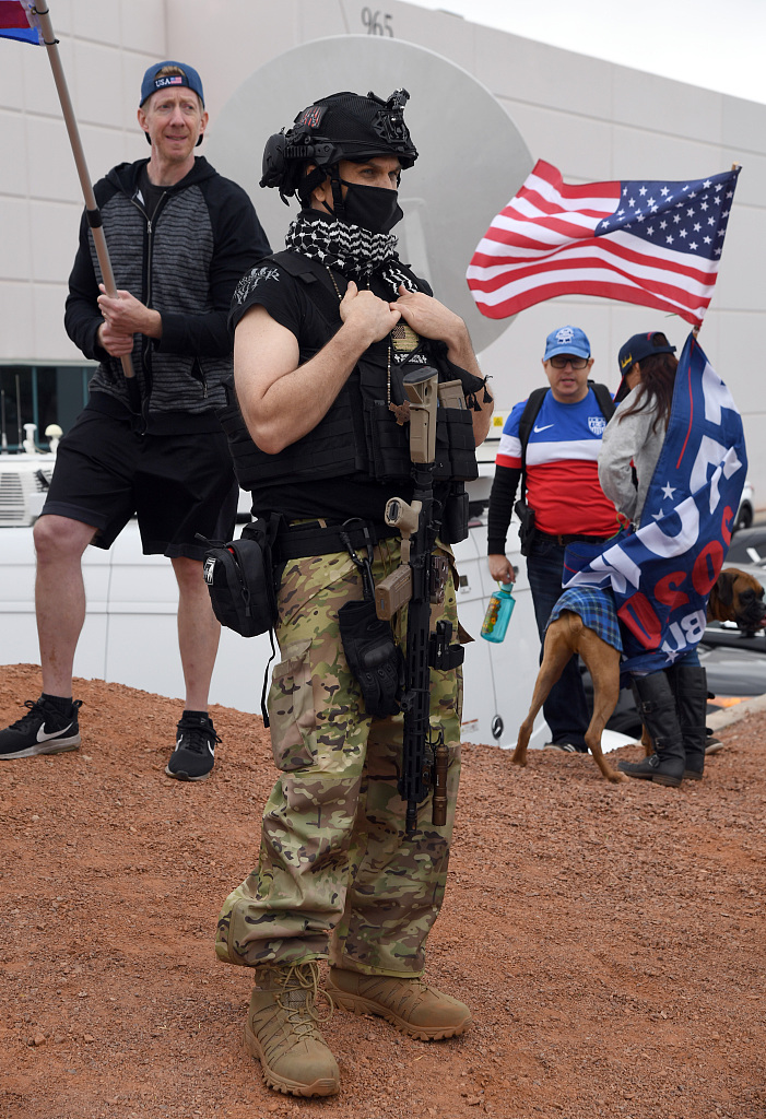 美媒称拜登胜选 特朗普支持者携带枪支抗议