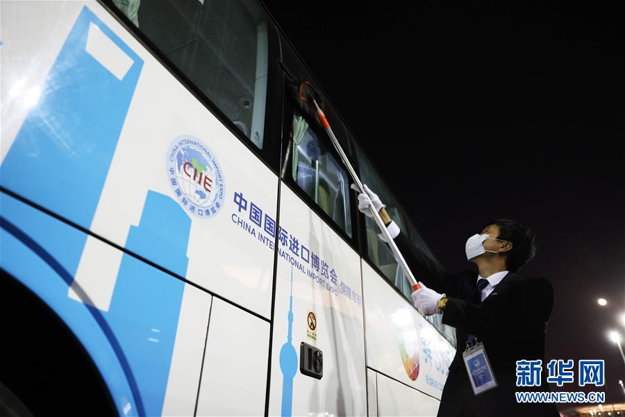 11月4日,司机郭松清洁进博会保障车辆。 第三届中国国际进口博览会正在上海举行。展会工作人员和保障人员在举办地国家会展中心(上海)坚守岗位,确保各项环节顺利进行。多才多艺的进博会志愿者“小叶子”、手艺精湛的食堂大厨、细心周到的穿梭巴士司机……身居幕后、无私奉献的保障团队,组成了进博会一条靓丽的风景线。 新华社记者 卢烨 摄