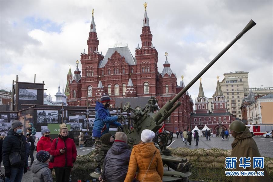 11月7日,在俄罗斯首都莫斯科,人们在红场参观以纪念1941年苏联红场阅兵式为主题的露天展览。 当日,俄罗斯在红场举行露天展览,纪念1941年苏联红场阅兵式。 新华社发(亚历山大摄)