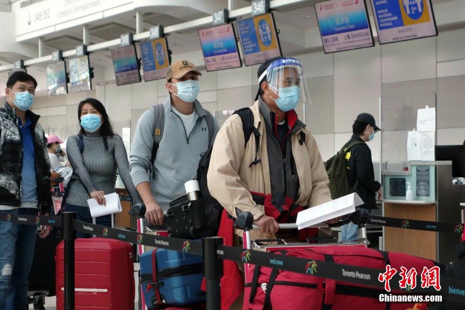 当地时间11月7日,准备直飞上海的乘客在多伦多皮尔逊国际机场排队办理值机手续。为减少疫情跨境传播,自11月7日起,从加拿大搭乘航班赴华的中、外籍乘客,须凭登机前2天内在加拿大采样的新冠病毒核酸检测阴性证明和血清特异性IgM抗体检测阴性证明登机,两者缺一不可。 中新社记者 余瑞冬 摄