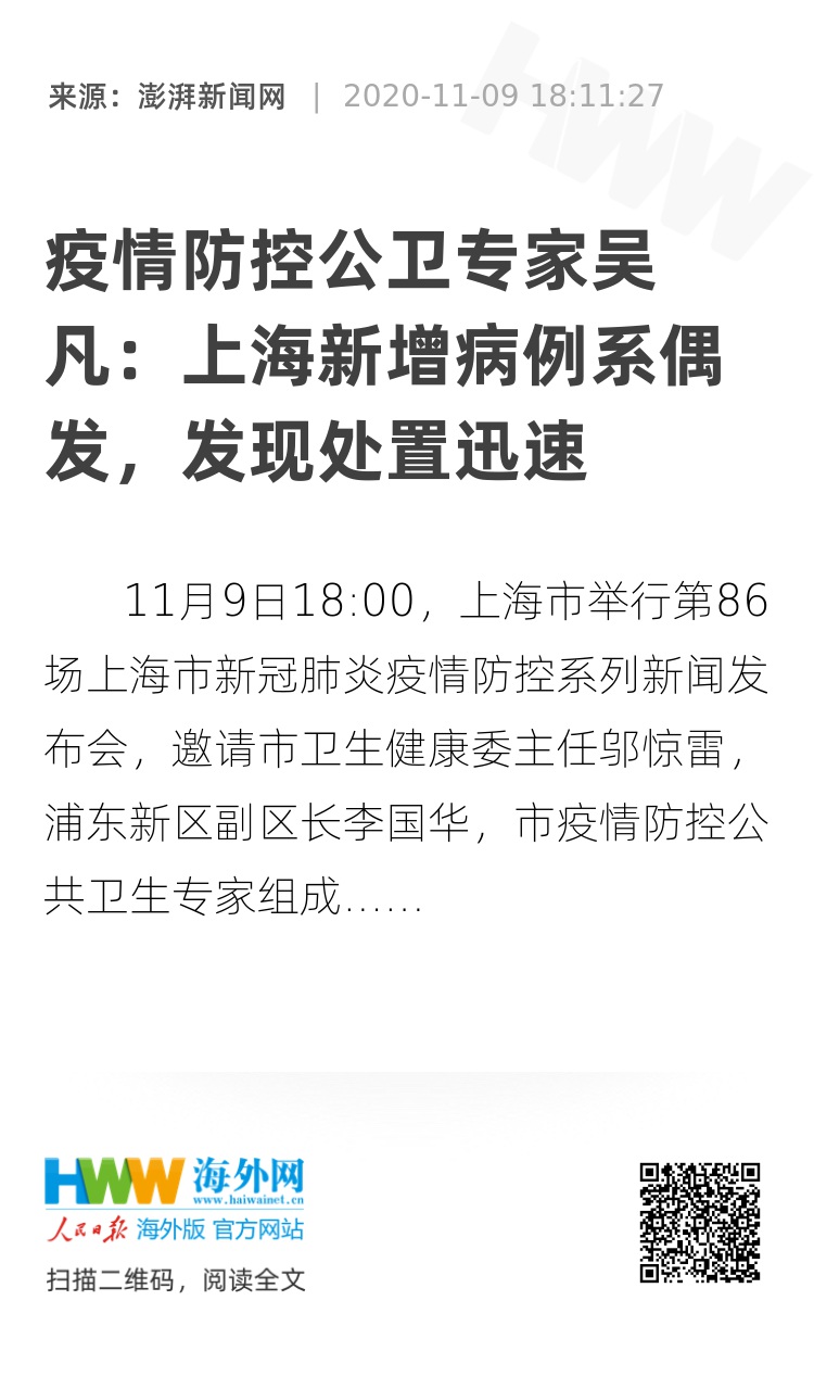 原标题:《疫情防控新闻发布会|吴凡:沪新增病例系偶发,发现处置迅速》