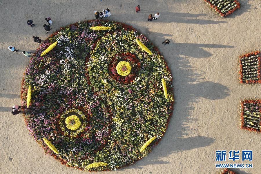 11月8日,游客在沙河市白塔镇栾卸村菊花园游览(无人机照片)。 近日,河北省沙河市白塔镇栾卸村菊花园开门迎客,吸引众多游客前来观赏。近年来,栾卸村引进优质菊花品种开展培育种植,打造拥有30000多盆、500多个品种的菊花园,助力美丽乡村建设和乡村旅游发展。 新华社记者 牟宇 摄