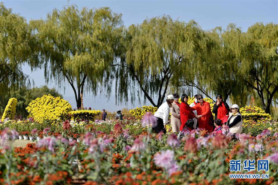 11月8日,游客在沙河市白塔镇栾卸村菊花园游览。 近日,河北省沙河市白塔镇栾卸村菊花园开门迎客,吸引众多游客前来观赏。近年来,栾卸村引进优质菊花品种开展培育种植,打造拥有30000多盆、500多个品种的菊花园,助力美丽乡村建设和乡村旅游发展。 新华社记者 牟宇 摄