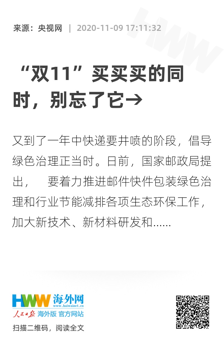 打造人人可参与的绿色“双11”,势在必行,众望所归。在单纯的道德劝谕之外,还应辅以精准的物质激励;在呼吁用户提升环保意识的同时,还应推广可降解的快递包装袋。在这个过程中加大技术创新,引入智能化操作,让环保更简单,让回收更便捷,让人人可参与变得人人易参与。