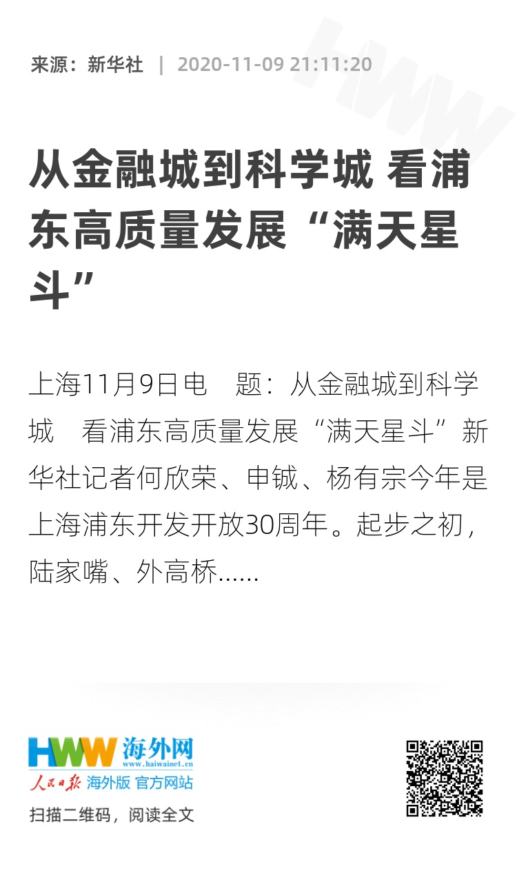新华社上海11月9日电 题:从金融城到科学城 看浦东高质量发展“满天星斗”