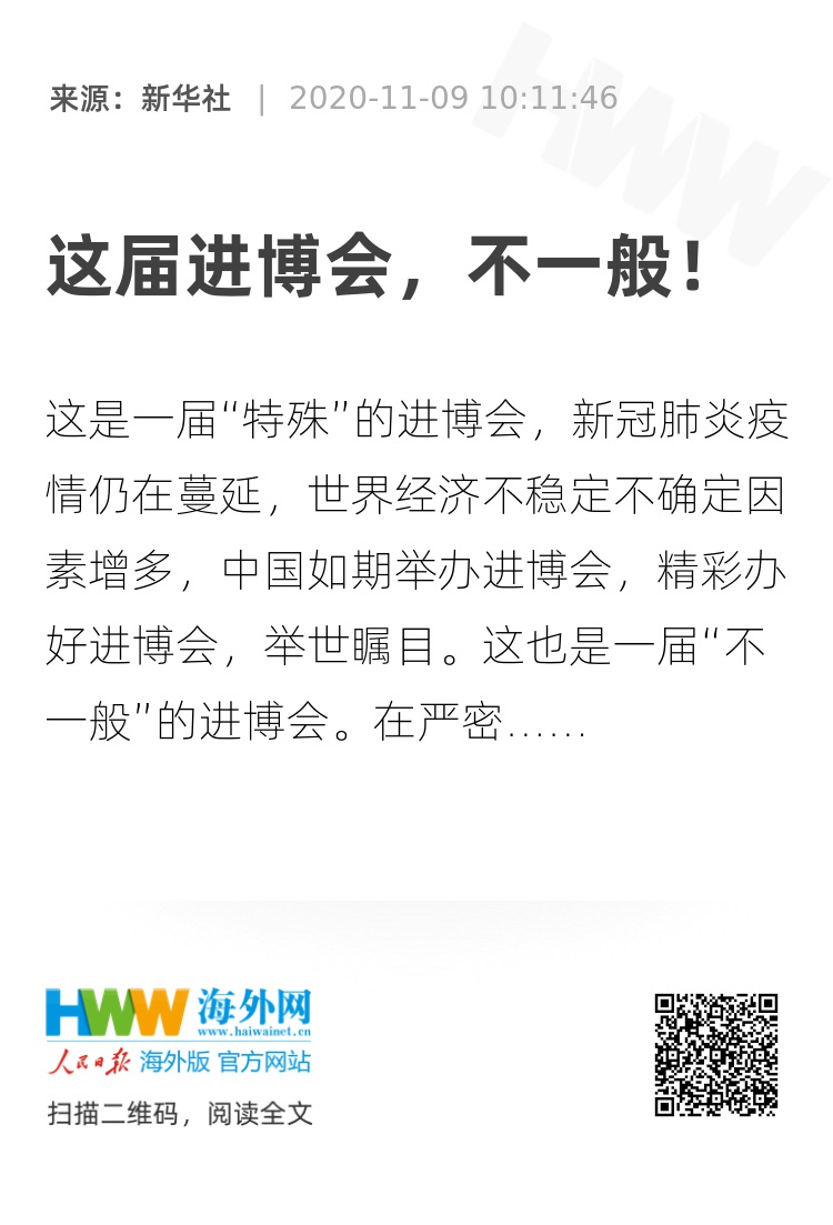 这是一届“特殊”的进博会,新冠肺炎疫情仍在蔓延,世界经济不稳定不确定因素增多,中国如期举办进博会,精彩办好进博会,举世瞩目。