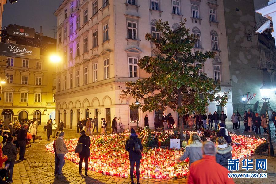 近日,不少维也纳市民自发来到维也纳枪击事件遇难者遇害地,点燃蜡烛寄托哀思。奥地利首都维也纳11月2日晚发生枪击事件。奥总理库尔茨谴责这起事件是“卑劣的恐怖袭击”。 新华社发(乔治斯·施耐德摄)