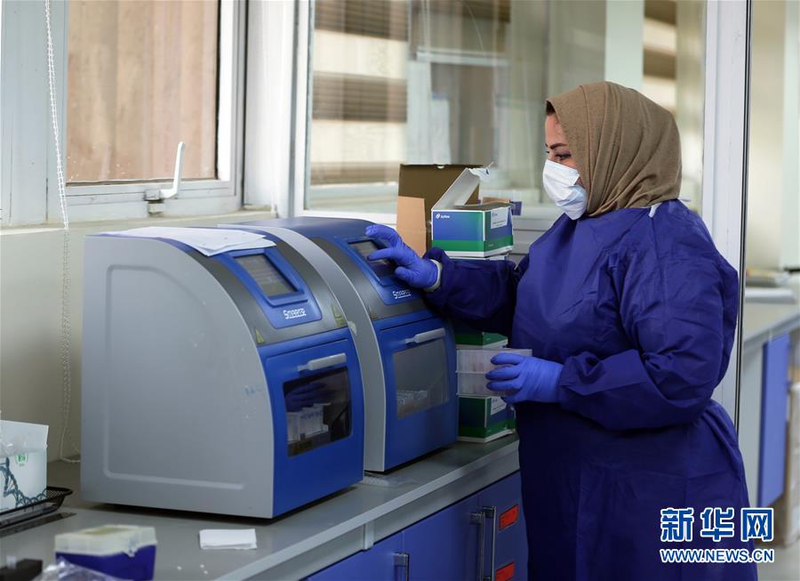 11月8日,在伊拉克巴格达,工作人员在中国援建伊拉克抗击新冠疫情的核酸检测实验室里检测样本。 伊拉克卫生部9日发布的新冠疫情数据显示,该国累计确诊病例超过50万例。疫情最严重的首都巴格达当天新增确诊病例1225例。当天该国共完成1.7万例样本检测。 新华社发