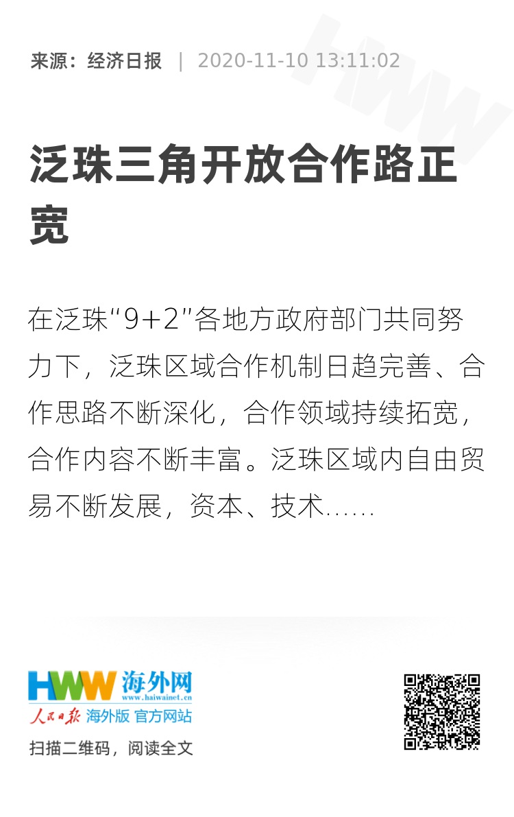 由福建、江西、湖南、广东、广西、海南、四川、贵州、云南9省区和香港、澳门特别行政区组成的泛珠三角区域,以全国五分之一的陆域面积、三分之一的人口贡献了三分之一的经济总量,不仅成为我国经济的重要增长极,更是最具活力和潜力的地区之一。