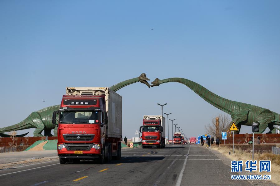 11月12日上午,首批加工完毕的1.2万只蒙古国捐赠羊完成装车,随即从内蒙古自治区二连浩特市启程,前往湖北省武汉市。新华社记者 刘磊 摄