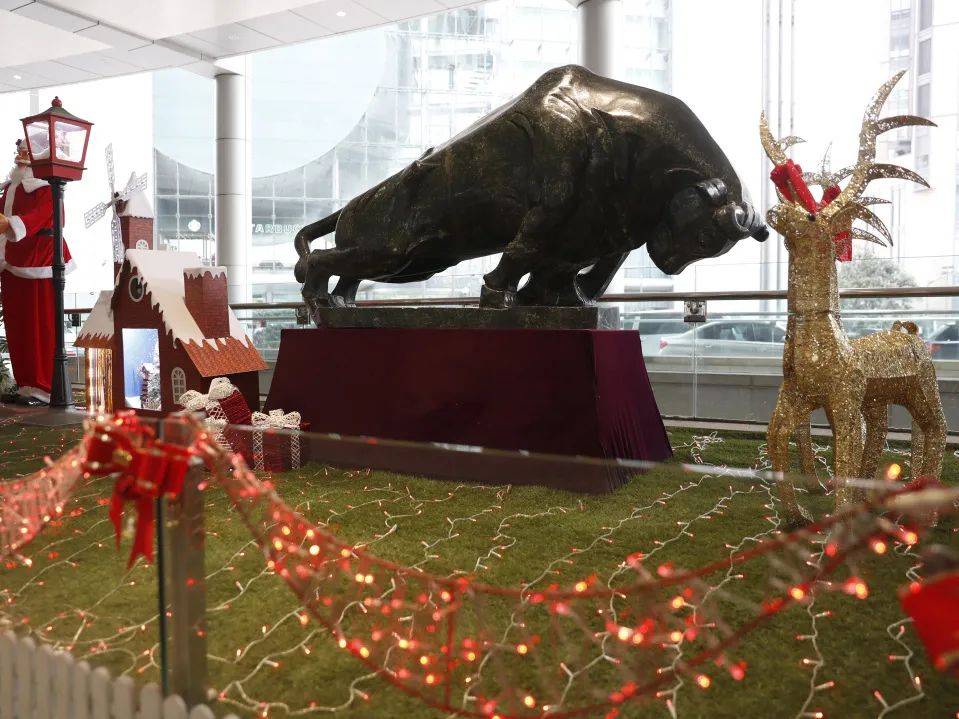 很快,上海证券交易所就将再一次搬入“新家”,三座塔楼以“品”字形组成,在空中构成“金融之门”,而新家门口还“牵”来了一头新“牛”,牛头朝上,气宇轩昂……