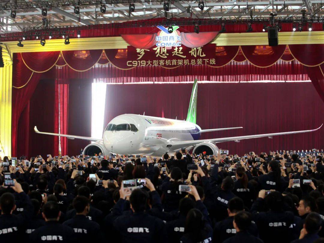 2015年11月2日,中国自主研制的C919大型客机首架机在上海浦东基地厂房正式下线。