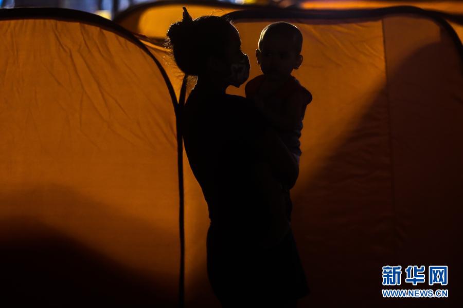 11月12日,在菲律宾奎松城的一处安置点,一名母亲怀抱婴儿。新华社发(乌马利摄)