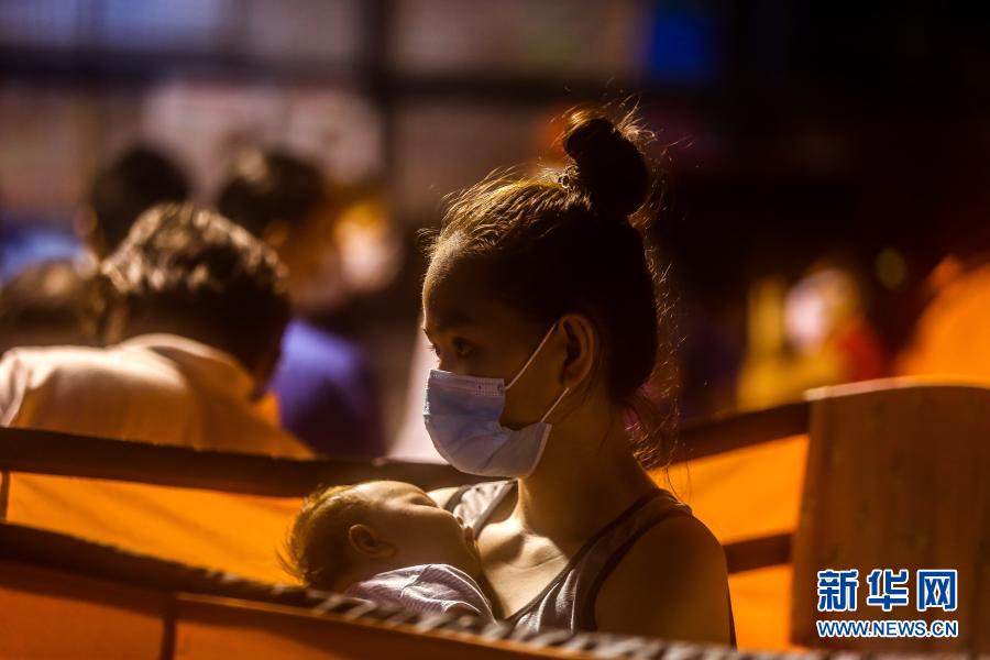 11月12日,在菲律宾奎松城的一处安置点,一名母亲怀抱婴儿。受台风“环高”影响,菲律宾大批民众被要求撤离,转移到安置点。新华社发(乌马利摄)