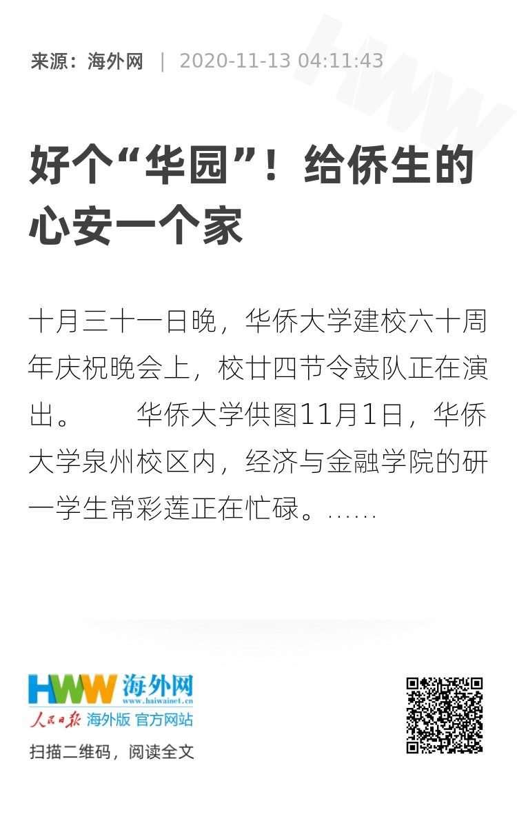 原标题:好个“华园”!给侨生的心安一个家(侨界关注)